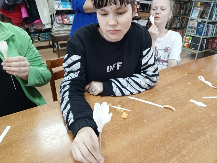 Участники волонтерского движения «Дари добро» Анапского социально-реабилитационного центра для несовершеннолетних совместно с сотрудниками Юровской сельской библиотеки-филиала №26 изготовили своими руками цветы крокуса, ставшие символом памяти о погибших в результате теракта в «Крокус Сити Холле» 22 марта.